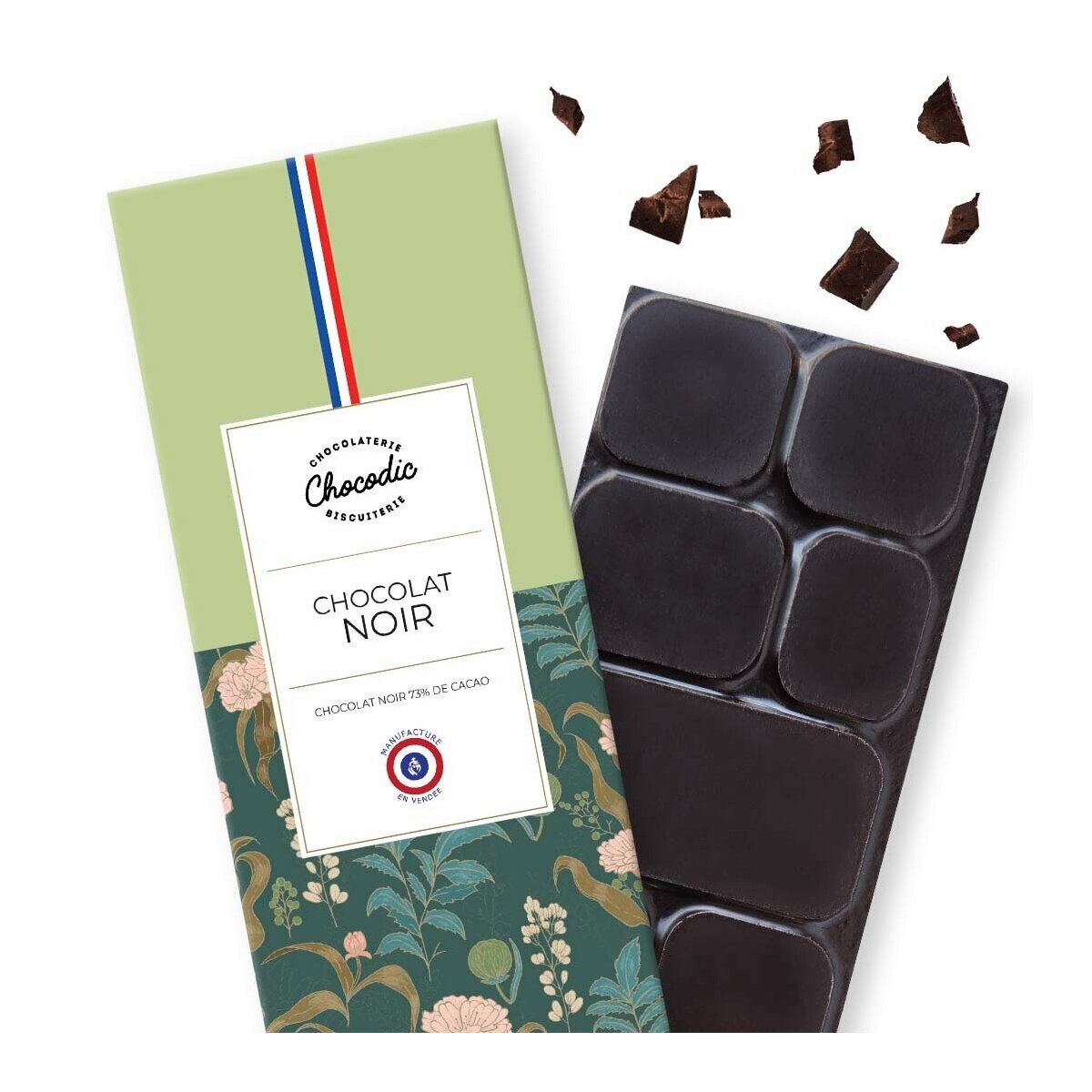 Savourez notre tablette de chocolat noir, 73% de cacao, confectionnée avec passion par nos artisans à La Roche-sur-Yon. Pesant 80g, chaque tablette est un trésor de saveurs intenses et authentiques, emballé dans un élégant carton durable. Nous allions savoir-faire traditionnel et ingrédients de qualité supérieure pour offrir une expérience gustative inoubliable. Faites le choix de l'artisanat et de l'écologie avec notre chocolat noir, où chaque morceau vous transporte au cœur d'une aventure sensorielle exquise. Indulgez dans l'élégance et l'intensité de notre chocolat noir dès aujourd'hui.