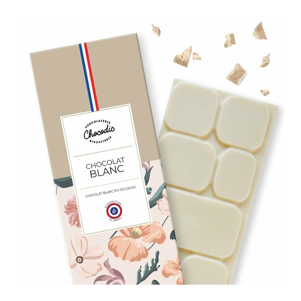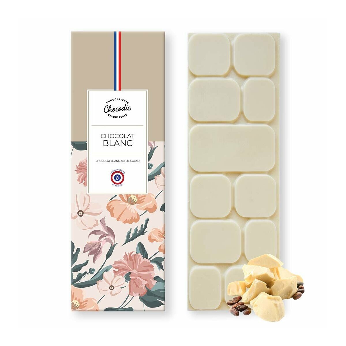 À La Roche sur Yon, plongez dans l'univers envoûtant de notre chocolat blanc artisanal, confectionné avec passion par nos artisans chocolatiers. Chaque tablette de 80g est le résultat d'un savoir-faire traditionnel transmis de génération en génération, garantissant une qualité et une saveur incomparables.